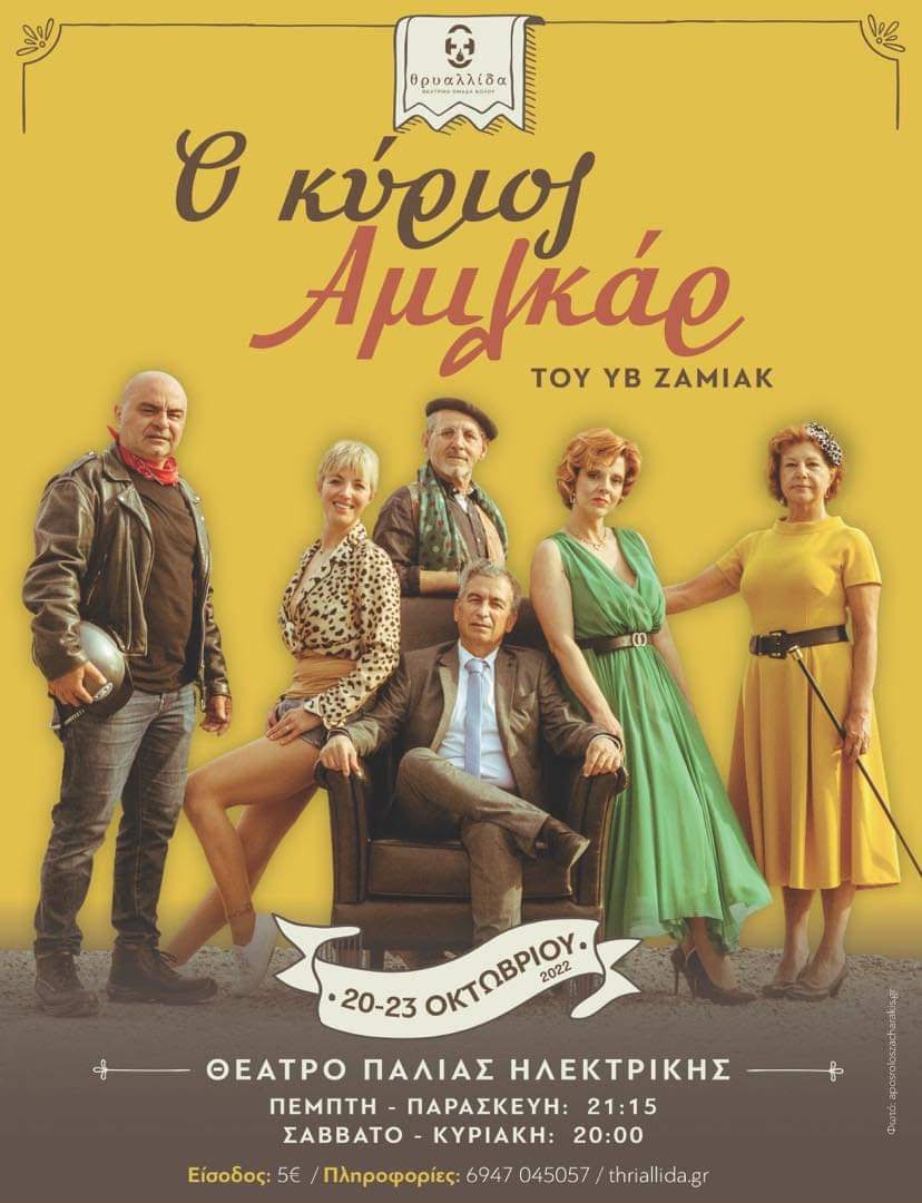 Η Θεατρική ομάδα Βόλου «ΘΡΥΑΛΛΙΔΑ» επανέρχεται με το έργο του Ύβ Ζάμιακ «Ο κ. Αμιλκάρ», μετά την επιτυχία του Μαΐου και μετά από απαίτηση του κοινού ξανά κοντά σας με 4 παραστάσεις!