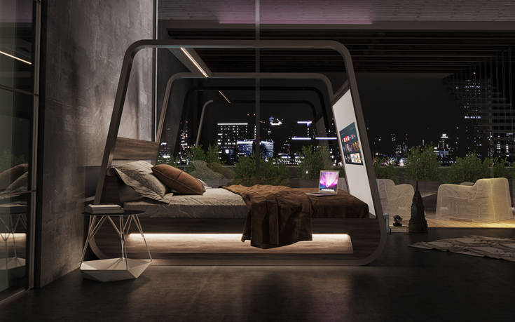 Η ιδέα του ιταλού αρχιτέκτονα και σχεδιαστή Fabio Vinella πατά πάνω στη σχεδιαστική φιλοσοφία της Hi-Interiors και διαθέτει ρυθμιζόμενα φώτα, ηλεκτρικές κουρτίνες, voice control και εφαρμογή που σε ενημερώνει για τον καιρό, την κίνηση στους δρόμους και τέτοια πράγματα κάθε πρωί.