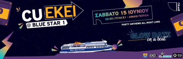 Η μεγαλύτερη εμπειρία του καλοκαιριού έρχεται για 4η συνεχόμενη χρονιά από το CU Around και την Blue Star Ferries, αυτή τη φορά με ένα μοναδικό Glow Date Party από το ΕΚΕΙ, το Σάββατο 15 Ιουνίου, στην Πύλη Ε1 στον Πειραιά.