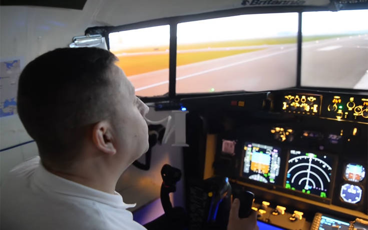 Ο David κάθεται τώρα στην ίδια θέση και χειρίζεται τα ίδια όργανα και μοχλούς που κάνει ένας πραγματικός κυβερνήτης Boeing 737…