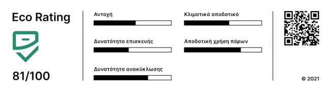 - Δυνατότητα επισκευής: Καλύπτει την ευκολία με την οποία μπορεί να επισκευαστεί η συσκευή, συμπεριλαμβανομένου του σχεδιασμού του κινητού τηλεφώνου και των υποστηρικτικών ενεργειών που θα μπορούσαν να αυξήσουν τη ζωή του προϊόντος, βελτιώνοντας τη δυνατότητα επισκευής, επαναχρησιμοποίησης και αναβάθμισής του. Μια υψηλή βαθμολογία συνεπάγεται την κάλυψη των κριτηρίων αυτών.