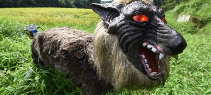 Αγρότες στην Ιαπωνία χρησιμοποιούν τρομακτικά ρομπότ – λύκους με κόκκινα led μάτια που ακτινοβολούν για να φοβίζουν αγριόχοιρους, ελάφια και άλλα ζώα που κάνουν επιδρομές σε καλλιέργειες.
