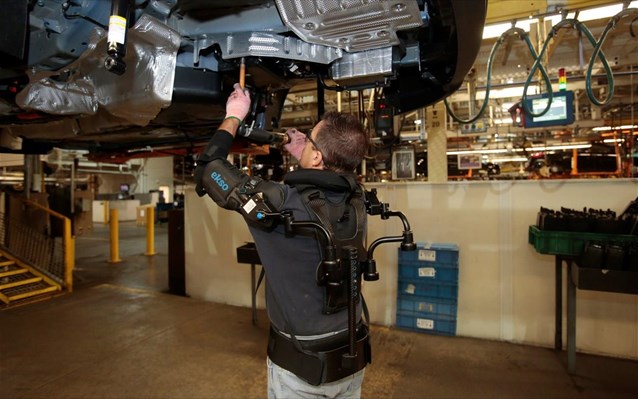 Όπως αναφέρει το Reuters, η αμερικανική αυτοκινητοβιομηχανία ανακοίνωσε την Πέμπτη πως εργάτες σε δύο εργοστάσιά της στις ΗΠΑ δοκιμάζουν εξωσκελετούς για το άνω μέρος του σώματος που ανέπτυξε η Ekso Bionics Holdings και προορίζονται να μειώσουν τους τραυματισμούς και να αυξήσουν την παραγωγικότητα.