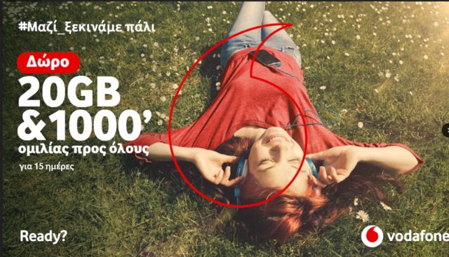 Με το μήνυμα #μαζί_ξεκινάμε πάλι, η Vodafone Ελλάδας συνεχίζει να στέκεται δίπλα στους πελάτες της και προσφέρει δωρεάν 20GB και 1000 λεπτά ομιλίας προς όλους, για να μοιραστούν τις στιγμές που περιμένουν, καλωσορίζοντας έτσι την επόμενη ημέρα της σταδιακής άρσης των μέτρων περιορισμού της κυκλοφορίας, με περισσότερη επικοινωνία.