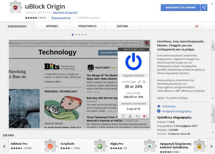 Το ίδιο ακριβώς κάνει και το uBlock Origin, μόνο που το κάνει με αποδοτικό τρόπο για τις οικιακές ανάγκες του προσωπικού μας υπολογιστή. Την ίδια ώρα που σκέφτεται πολύ τη μνήμη του συστήματός μας.