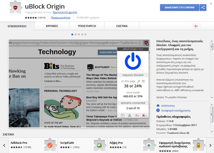 Κάποιες όμως είναι πιο γενικές και αφορούν σε όλους και μια τέτοια είναι και το uBlock Origin.Τα περισσότερα επαγγελματικά firewalls που αγοράζουν οι εταιρίες για την προστασία τους από κακόβουλα λογισμικά έχουν υπηρεσίες web blocking (μη πρόσβαση σε συγκεκριμένες σελίδες) για να αποτρέπουν τους υπαλλήλους να επισκέπτονται κατά λάθος ύποπτες σελίδες. Δουλεύουν μάλιστα τσεκάροντας τεράστιες βάσεις δεδομένων και μαύρες λίστες με «σεσημασμένα» websites.