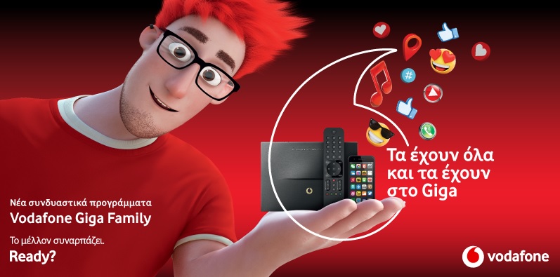 H Vodafone εγκαινιάζει τα ανανεωμένα συνδυαστικά προγράμματα Vodafone Giga Family που έρχονται να καλύψουν τις ανάγκες επικοινωνίας και ψυχαγωγίας όλων των νοικοκυριών, συνδυάζοντας υπηρεσίες κινητής, σταθερής, Internet και τηλεόρασης.