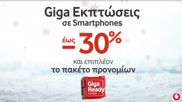 Η Vodafone ανοίγει την περίοδο των Χειμερινών Εκπτώσεων με μοναδικές προσφορές έως -30% σε Smartphones και έως -50% σε αξεσουάρ, που σε συνδυασμό με το αποκλειστικό πακέτο προνομίων Giga Ready, δίνει σε όλους την ευκαιρία να επωφεληθούν ακόμα περισσότερο με τις αγορές τους.
