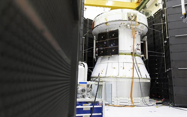 Σύμφωνα με την εταιρεία, «η κάψουλα πληρώματος για τη μη επανδρωμένη αποστολή Artemis 1 στη Σελήνη τοποθετήθηκε πάνω στο service module του Orion, που ολοκληρώθηκε επίσης πρόσφατα».