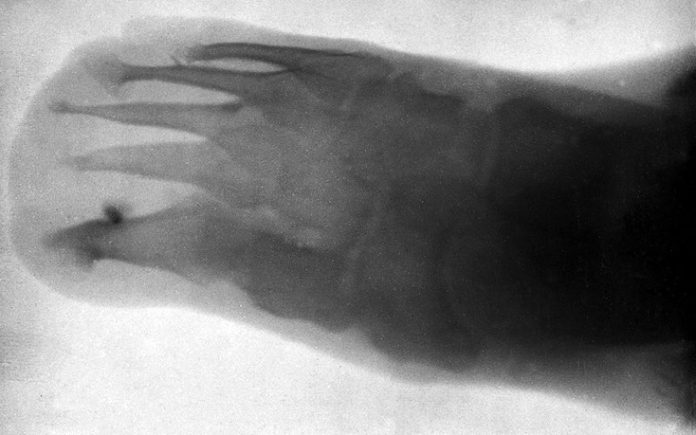 Για τους αμύητους, όλο τον κόσμο λίγο-πολύ, ήταν βέβαια μια απόκοσμη εικόνα που δεν έμοιαζε σε τίποτα με όσα ήξεραν από φιλμ και αναπαραστάσεις! Ήταν η πρώτη ραδιογραφία, μια φωτογραφία που είχε εκτεθεί δηλαδή σε ακτίνες Χ και όχι σε ηλιακό φως, και παρουσίαζε ένα σκελετωμένο χέρι με ένα μεγάλο σκούρο γαμήλιο δαχτυλίδι.