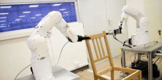 Δύο ρομπότ συναρμολογούν από κοινού έπιπλα