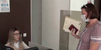 Ένα ρομπότ – υπάλληλος με ξανθά μαλλιά σε δημόσια υπηρεσία