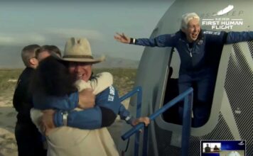 Ο Τζεφ Μπέζος “πέταξε” στο διάστημα και… γύρισε 10 λεπτά και 18 δεύτερα μετά με καουμπόικο καπέλο και σαμπάνια