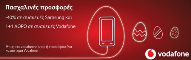 Και φέτος το Πάσχα, τα καταστήματα Vodafone δίνουν τη δυνατότητα σε όλους να επωφεληθούν από μοναδικές προσφορές και να αποκτήσουν τις αγαπημένες τους Samsung Galaxy συσκευές έως και 40% φθηνότερα, αλλά και να κερδίσουν 1+1 δώρο με κάθε αγορά σε Vodafone Smart συσκευές.