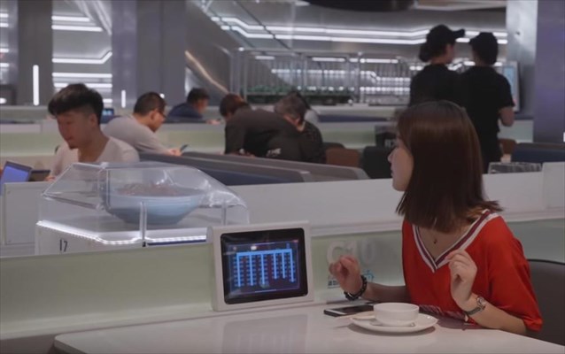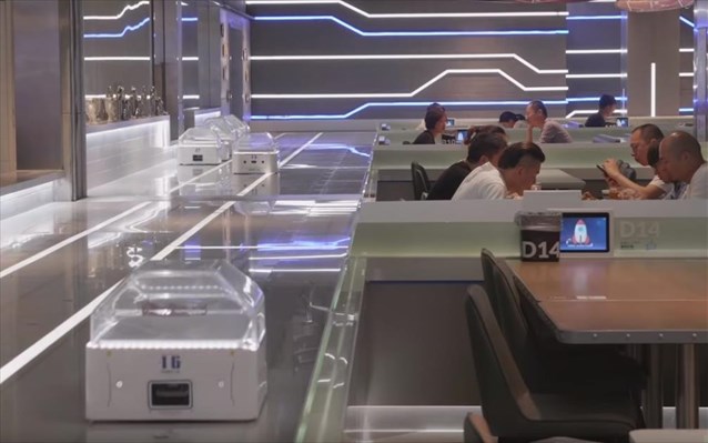 Ρομπότ χρησιμοποιεί αντί για ανθρώπους σερβιτόρους εστιατόριο στη Σαγκάη της Κίνας, στο πλαίσιο μιας πρωτοβουλίας του κινεζικού κολοσσού του e-commerce, Alibaba.