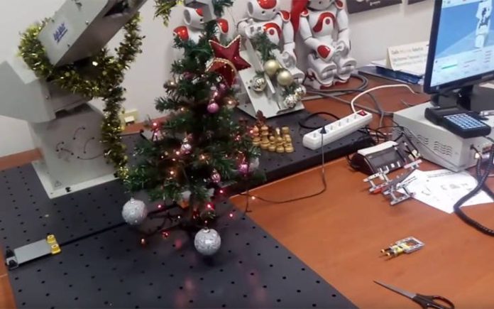Οι φοιτητές προγραμμάτισαν ένα ρομπότ να τραγουδάει κρητικά κάλαντα και έναν ρομποτικό βραχίονα να στολίζει το χριστουγεννιάτικο δέντρο του εργαστηρίου του πανεπιστημίου. Η αλήθεια είναι πως τους πήρε λίγο περισσότερο χρόνο από ό,τι χρειάζεται ο μέσος άνθρωπος για να στολίσει ένα δέντρο -έξι μήνες μελετούσαν κινηματικά μοντέλα και δύο μέρες χρειάστηκαν για να προγραμματίσουν τις σχετικές εντολές, όμως αποδείχθηκε πως πέρα από το χριστουγεννιάτικο πνεύμα, υπάρχει πνεύμα ευρηματικό και διορατικό.
