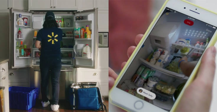 InHome αποκαλεί τη νέα και εξόχως νεωτεριστική υπηρεσία η Walmart, που θα φέρνει τα φορτηγά και τους υπαλλήλους στην εξώπορτα του πελάτη. Εφοδιασμένοι με φορητές κάμερες και αυτή την αδιευκρίνιστη «έξυπνη τεχνολογία πρόσβασης», οι υπάλληλοι θα αποκτούν πρόσβαση στο σπίτι ώστε να τοποθετούν τα προϊόντα που θέλουν ψύξη μέσα στο ψυγείο, με την ελάχιστη δυνατή ενόχληση για τον πελάτη.Ο οποίος θα μπορεί φυσικά να παρακολουθεί την όλη… διάρρηξη σε πραγματικό χρόνο και να ελέγχει την πρόσβαση στον χώρο του.