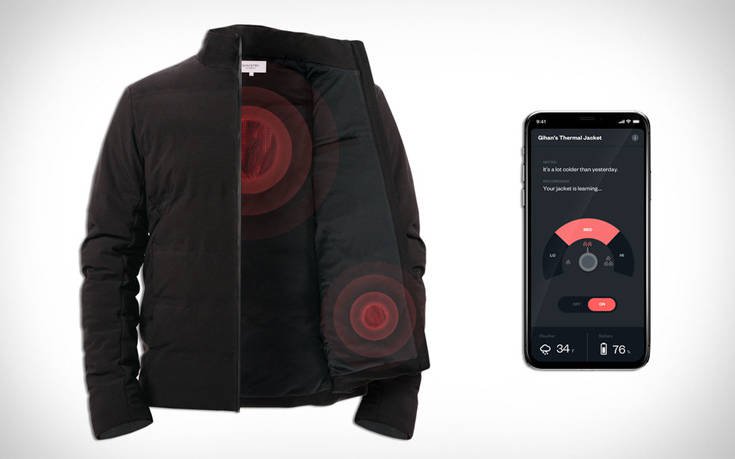 Κάτω από το αδιάβροχο εσωτερικό του κρύβονται μια σειρά από θερμαινόμενες ίνες άνθρακα. Κι ενώ αυτό είναι από μόνο του εντυπωσιακό ως τεχνολογικό επίτευγμα, το μπουφάν είναι εφοδιασμένο και με τεχνητή νοημοσύνη. Λειτουργεί δηλαδή ως έξυπνος θερμοστάτης, που συλλέγει δεδομένα για την εξωτερική θερμοκρασία αλλά και τη θερμότητα του σώματός μας, ακόμα και δεδομένα που έχουν να κάνουν με την κίνησή μας.Και μετά συνδυάζει όλες αυτές τις πληροφορίες με τις προσωπικές μας προτιμήσεις, μέχρι να μάθει τελικά τα γούστα μας και να μας κρατάει όσο ζεστούς θέλουμε κάθε φορά.