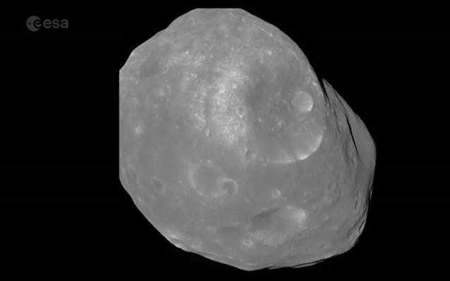 Μια «ταινία» με «πρωταγωνιστή» τον Φόβο, δορυφόρο του Άρη, τράβηξε πρόσφατα το Mars Express του Ευρωπαϊκού Οργανισμού Διαστήματος, ενώ το φεγγάρι περνούσε μπροστά από την κάμερα του σκάφους- με αποτέλεσμα την καταγραφή λεπτομερειών της επιφάνειάς του.