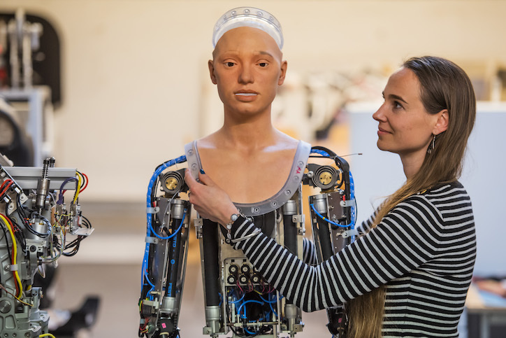 Από τη στιγμή που τα ρομπότ με τεχνητή νοημοσύνη σκιτσάρουν και ζωγραφίζουν, ήταν θέμα χρόνου να κάνουν και εκθέσεις των έργων τους. Την πρώτη τέτοια έκθεση στον κόσμο θα κάνει η ρομποτική ζωγράφος Ai-Da στη γκαλερί «Barn» στο Κολλέγιο του Αγίου Ιωάννη του Πανεπιστημίου της Οξφόρδης από τις 12 Ιουνίου έως τις 6 Ιουλίου.