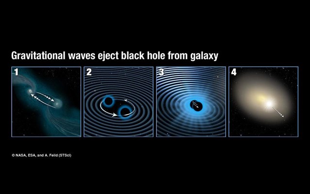 Έτσι, όταν σχηματίσθηκε μία νέα μαύρη τρύπα από τη συγχώνευσή τους, άρχισε να επιταχύνεται προς την αντίθετη κατεύθυνση από τη διάδοση των ισχυρότερων βαρυτικών κυμάτων.