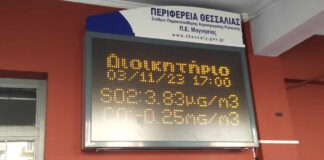 Ενημερωτική πινακίδα αποτυπώνει τις εκπομπές αερίων ρύπων στον Βόλο