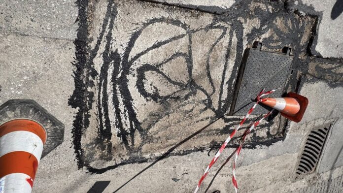 «Ας ρίξουμε δυο σταγόνες για να κολλήσει καλά η πίσσα», είπε όποιος έφτιαξε αυτή την… αλφαδιά στα Παλαιά του Βόλου, αφήνοντάς μας όλους με το στόμα ανοιχτό για την ποιότητα των υποδομών στην πόλη μας.