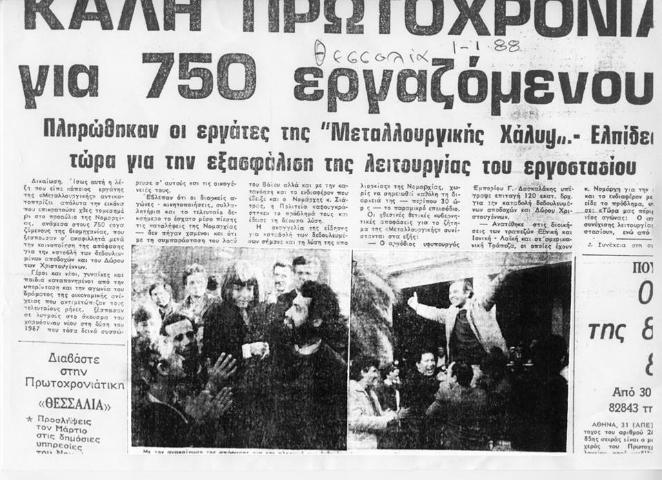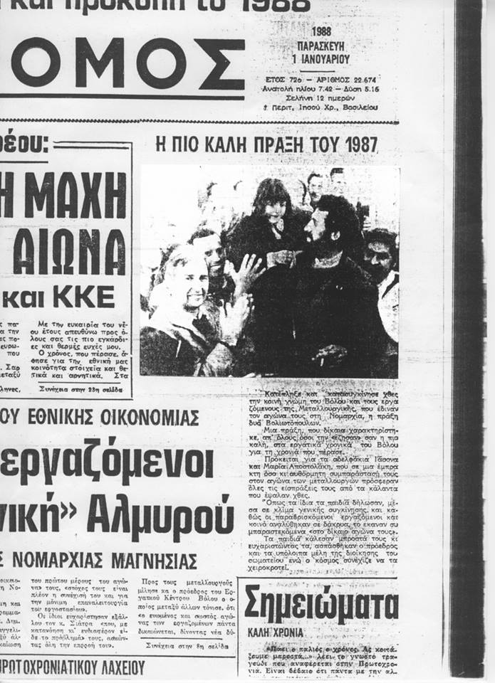 Παραμονή Πρωτοχρονιάς 19887. Η κοινή γνώμη του Βόλου συγκινείται από την πράξη δυο Βολιωτόπουλων. Μια πράξη, που δίκαια χαρακτηρίστηκε κι απ’ όλους όσους την έζησαν σαν η πιο καλή, στα εργατικά χρονικά του Βόλου. Πρόκειται για τα αδέλφια Ιάσονα και Μαρία Αποστολάκη, που σε μια έμπρακτη όσο κι αυθόρμητη συμπαράσταση τους στον αγώνα των μεταλλουργών προσέφεραν όλες τις εισπράξεις τους από τα κάλαντα που έψαλαν. Όπως τα ίδια τα παιδιά δήλωσαν, μέσα σε κλίμα γενικής συγκίνησης, και καθώς οι παρευρισκόμενο εργαζόμενοι και κοινό αναλύθηκαν σε δάκρυα, το έκαναν συμπαραστεκόμενα στο «δίκαιο αγώνα τους». Ήταν η ίδια χρονιά όπου οι 750 εργαζόμενοι της «Μεταλλουργικής Χάλυψ» πληρώθηκαν μετά από διαρκείς αγώνες, κινητοποιήσεις, συλλαλητήρια, αλλά και της κατάληψης της Νομαρχίας. «Ήταν μια συγκλονιστική στιγμή για μένα, όταν διαβάζοντας τις πρωτοχρονιάτικες εφημερίδες του Βόλου , είδα στις πρώτες σελίδες να αναφέρονται σε μια πράξη αλληλεγγύης των παιδιών μου που είχε γίνει την προηγούμενη μέρα» έλεγε, συγκινημένος ο πατέρας του υποψήφιου δημάρχου Βόλου σήμερα, Ιάσονα Αποστολάκη, Απόστολος, ενώ η δημοτική σύμβουλος, κ. Φωτεινή Κοκκινάκη σημείωνε πως «Γιατί να το κρύψουμε. Άλλη μια πράξη του Ιάσονα και της αδελφής του που επιβεβαιώνει την απόφαση μας να στηρίξουμε για δήμαρχο ένα νέο άνθρωπο που το ήθος του δεν είναι κάτι που φάνηκε τα τελευταία τέσσερα χρόνια στο δημοτικό συμβούλιο αλλά διδάχθηκε από τους γονείς τους και όπως προκύπτει και σήμερα το έμαθαν καλά το μάθημα τους. Μακάρι να ήταν εδώ η Μίνα, η εξαίρετη καθηγήτρια μου να τον καμαρώνει».