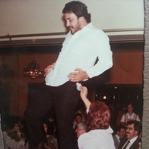 Εντάξει. Με τη συγκεκριμένη φωτογραφία πειστήκαμε. Ο Αχιλλέας Μπέος είναι ένα φυσικό ταλέντο. Από μικρός αρέσκονταν στο να διασκεδάζει τον κόσμο. Το έχει στο αίμα του βρε αδελφέ πώς να το κάνουμε. Εδώ τον βλέπουμε, μάλλον την περίοδο που ήταν στην Αμερική, αν κρίνουμε από τα δολάρια που προσπαθεί η κυρία να του βάλει στην τσέπη, επιβραβεύοντας τον για τις καλές του χορευτικές επιδείξεις, διασκεδάζοντας το κοινό του. Αν κρίνουμε από τα γέλια των γύρω θαμώνων, πρέπει όντως να είναι ταλαντούχος. Κοίτα σκέρτσο, κοίτα νάζι, κοίτα τσαχπινιά. Κρίμα να έχουν απαγορευτεί τα τσίρκο στις μέρες μας, θα μπορούσε κάλλιστα να έχει μια θέση στο πρόγραμμα τους, γιατί για δήμαρχος δεν κάνει. Το αποδεικνύει καθημερινά τρία χρόνια τώρα. Ίσως για κανένα τάλεντ σόου αν προσπαθήσει, αλλιώς με τις γνωριμίες που έχει ίσως ο Σεφερλής να του δώσει κανένα ρολάκι. Και ίσως και πολύ του είναι.