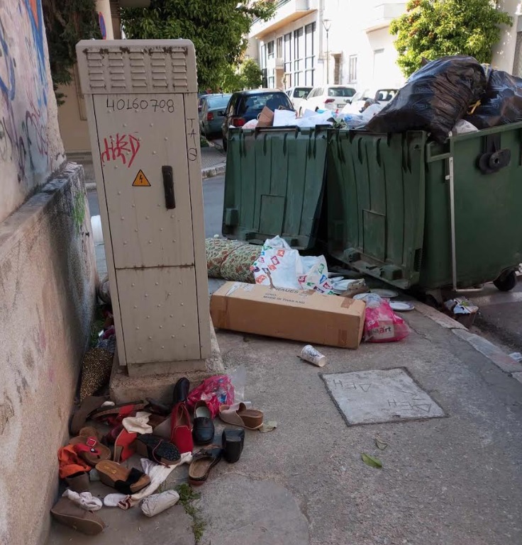 Αδιαπέραστο ήταν το πεζοδρόμιο στη συμβολή της Ανθίμου Γαζή με την Αθανασίου Διάκου στον Βόλο, καθώς κάποιοι φρόντισαν να γεμίσουν το σημείο με κάθε είδους απορρίμματα. Όπως φαίνεται και στη φωτογραφία είναι πεταμένα γύρω από τους κάδους πάρα πολλά παπούτσια, ρούχα και άλλα αντικείμενα, με την περιοχή να θυμίζει κάτι από παζάρι στην υποσαχάρια Αφρική. Ορισμένοι είναι απορίας άξιο γιατί όταν δεν χρειάζονται κάποια ρούχα, παπούτσια ή άλλα είδη, τα οποία βρίσκονται σε καλή κατάσταση επιμένουν να τα πετάνε στα σκουπίδια και όχι να τα χαρίζουν σε κάποια από τις δεκάδες δομές που υπάρχουν, είτε του δήμου, είτε της Εκκλησίας, είτε εθελοντών. Εκεί δηλαδή όπου θα πιάσουν τόπο και δεν θα πάνε χαμένα όπως τα σκουπίδια. Τι να πούμε άβυσσος η ψυχή του καθενός και της καθεμιάς.