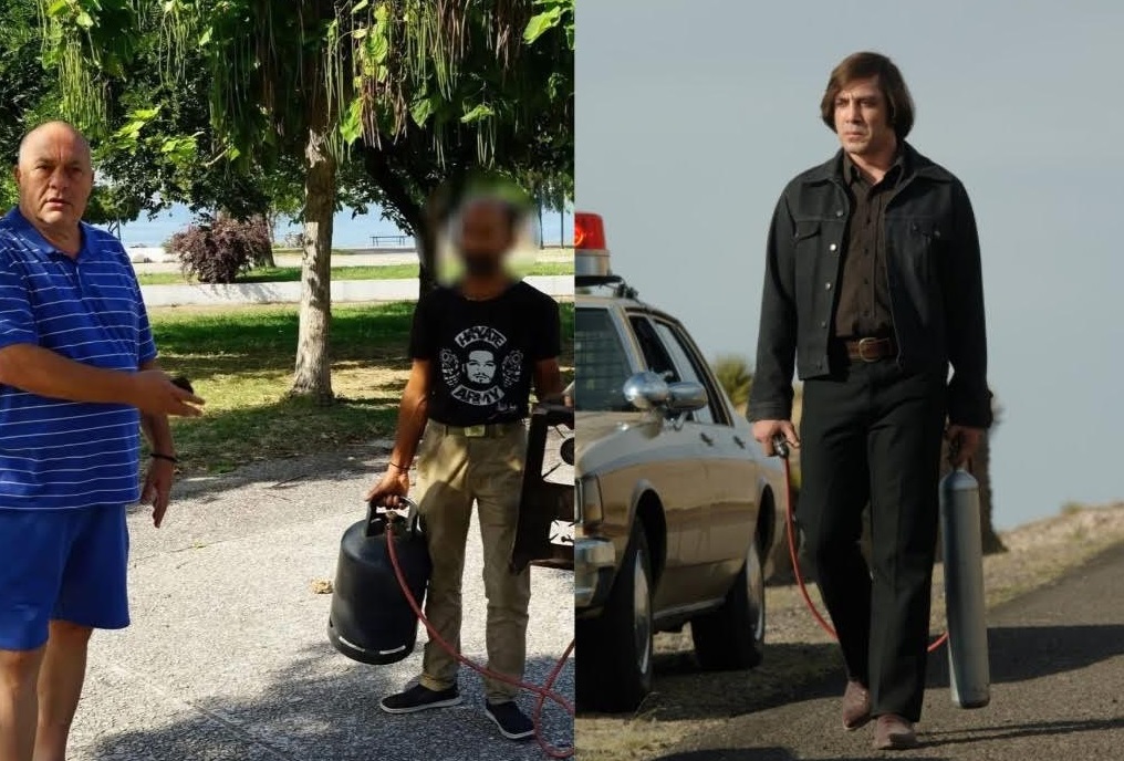 Εντάξει. Βλέποντας την φωτογραφία του… αγανακτισμένου ήρωα με τις…παντούφλες, Αχιλλέα Μπέου με τον Ρομά που κρατά την φιάλη υγραερίου στα χέρια με 40 βαθμούς, στο πάρκο του Αναύρου, κάναμε καινούργιο συκώτι. Αυτή η φωτογραφία αποτελεί μνημείο, με έναν δήμαρχο σε άκρως καλοκαιρινή διάθεση, με beachwear που θα ζήλευε και ο Λάκης Γαβαλάς και θα ήθελε να φορέσει στα Ματογιάννια, κι έναν Ρομά με gangsta μπλούζα Ηayate Army να κουβαλά φιάλη, έτοιμος να τα τινάξει όλα στον αέρα, αλά Μπαρδέμ στο No country for old men. Κι έρχεσαι κι αναρωτιέσαι. Πόσο σουρεάλ μπορεί να αντέξει αυτή η πόλη ακόμη; Πολύ μάλλον…