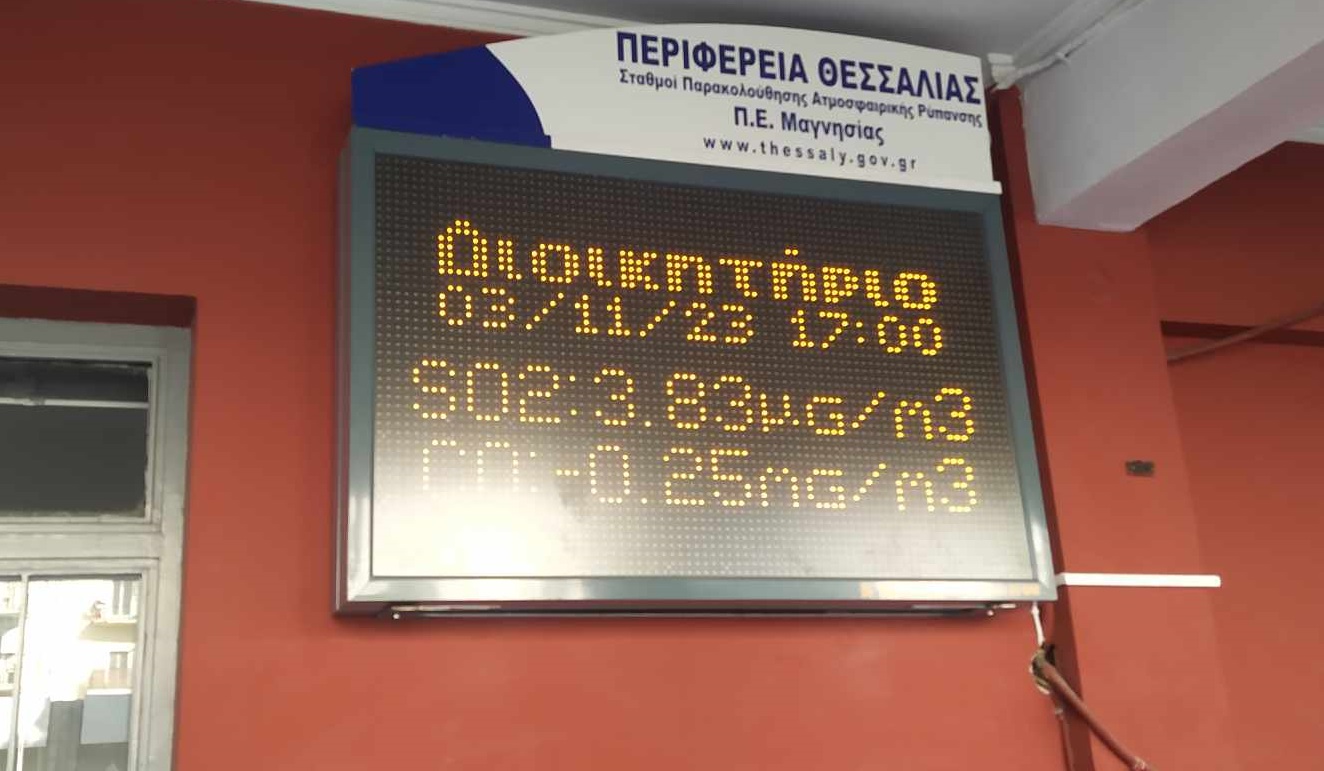 Μπορεί αυτή τη στιγμή να μη μας απασχολεί, καθώς οι καιρικές συνθήκες και η ποιότητα της ατμόσφαιρας είναι πολύ καλές, ωστόσο καλό θα είναι να γνωρίζουν οι πολίτες ότι έξω από το κτίριο της Π.Ε. Μαγνησίας έχει τοποθετηθεί μία ενημερωτική πινακίδα που αποτυπώνει τις εκπομπές αέριων ρύπων σε πραγματικό μάλιστα χρόνο, όπως αυτοί καταγράφονται από τους σταθμούς μέτρησης αέριας ρύπανσης. Πρόκειται για πρωτοβουλία που είχε αναληφθεί από κοινού με την ερευνητική ομάδα Γουργουλιάνη-Σαχαρίδη του Π.Θ. και ξεκίνησε να υλοποιείται από το 2020. Μάλιστα επιδίωξη της Περιφέρειας ήταν, οι πινακίδες να ενημερώνουν τους πολίτες, τόσο για το κυκλοφοριακό φόρτο και τις πιο σύντομες διαδρομές που μπορούν να ακολουθήσουν για να μεταβούν στον προορισμό τους, κάτι που για την ώρα δεν έχει υλοποιηθεί. Ωραία σαν πρωτοβουλία και θα είναι ακόμη καλύτερη όταν ολοκληρωθεί.