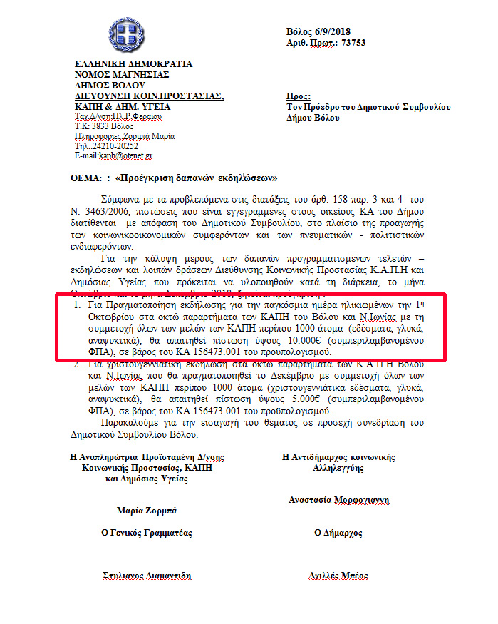 Μπορεί ο Αχιλλέας Μπέος το καλοκαίρι να φοράει μαγιό με τον Άη Βασίλη και το Δημοτικό Συμβούλιο να ψηφίζει την προμήθεια χριστουγεννιάτικων λαμπιονιών εν μέσω καύσωνα, αλλά αυτό δεν σημαίνει ότι όλα ψηφίζονται τόσο νωρίς. Να ας πούμε οι δαπάνες ύψους 10 χιλ ευρώ για την γιορτή της τρίτης ηλικίας τη Δευτέρα όπου τραγούδησε ο Άγγελος Διονυσίου (ποιον να έχει μάνατζερ;) ψηφίστηκαν σήμερα 3 Οκτωβρίου στο Δ.Σ. αφού είχε γίνει η γιορτή. Είναι τέτοια η πρόκληση της Δημοτικής Αρχής που δεν λογαριάζει ούτε από προσχήματα ούτε από νομοθεσία. Το επισήμανε άλλωστε ο δημοτικός σύμβουλος Τέλης Δουλόπουλος ότι «η γυναίκα του Καίσαρα δεν αρκεί να είναι τίμια, πρέπει και να φαίνεται κιόλας»…τώρα θα μου πείτε ποιος το κατάλαβε εκεί μέσα…το ζήτημα είναι ότι η δαπάνη είναι εξόφθαλμα παράνομη και η διαδικασία «εικονική». Τι έχει να πει γι’ αυτό ο κ. Ντίτορας;