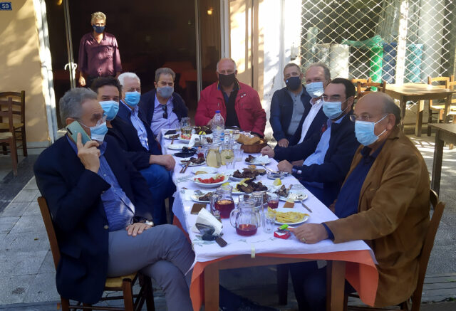 Στου «Κουβάτα» για ψητό βρέθηκε την περασμένη Κυριακή ο βουλευτής Μαγνησίας της Νέας Δημοκρατίας Θανάσης Λιούπης πλαισιωμένος από καλούς φίλους και συναδέλφους του γιατρούς και συνέφαγαν με τον Δήμαρχο Ρήγα Φεραίου Δημήτρη Νασίκα και τον Αντιδήμαρχο πολιτικής προστασίας Δημήτρη Παλληκάρη. Μαζί τους ήταν και ο π. Αντιπεριφερειάρχης και νυν περιφερειακός σύμβουλος Γιώργος Κίτσιος και ο Διευθυντής της Χειρουργικής Κλινικής του Νοσοκομείου Βόλου Νίκος Έξαρχος. Χαλαρό το κλίμα, αλλά πάντα τηρώντας το υγειονομικό πρωτόκολλο. Εντύπωση πάντως προκάλεσε το κόκκινο μπουφάν του δημάρχου, ο οποίος ερωτηθείς από τη στήλη για την επιλογή του απάντησε «έμαθα ότι είναι ο Μεϊκόπουλος στο Βελεστίνο και ντύθηκε αναλόγως» προκαλώντας γέλια στην παρέα. Ο βουλευτής του ΣΥΡΙΖΑ μάλιστα χαιρετήθηκε με την παρέα και δέχθηκε να φωτογραφηθεί, επιβεβαιώνοντας το καλό κλίμα που υπάρχει μεταξύ τους.