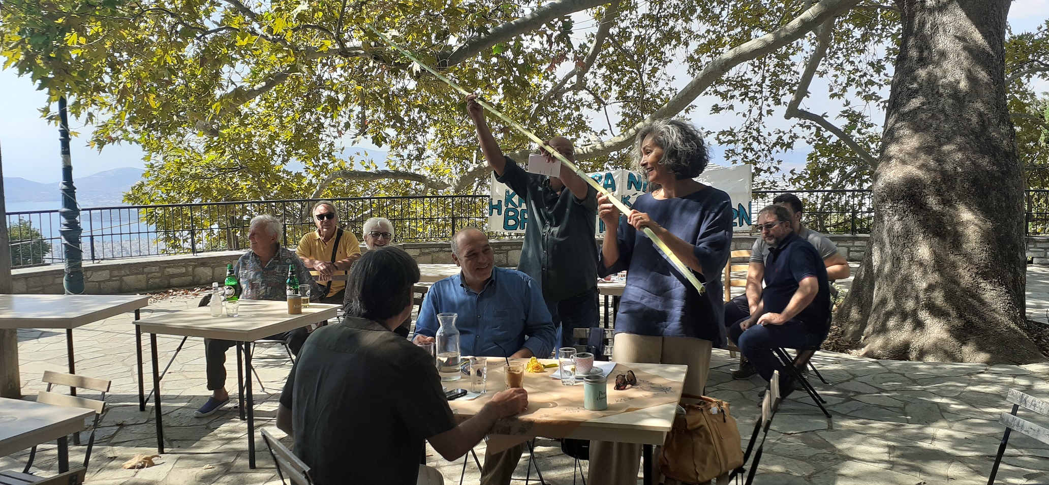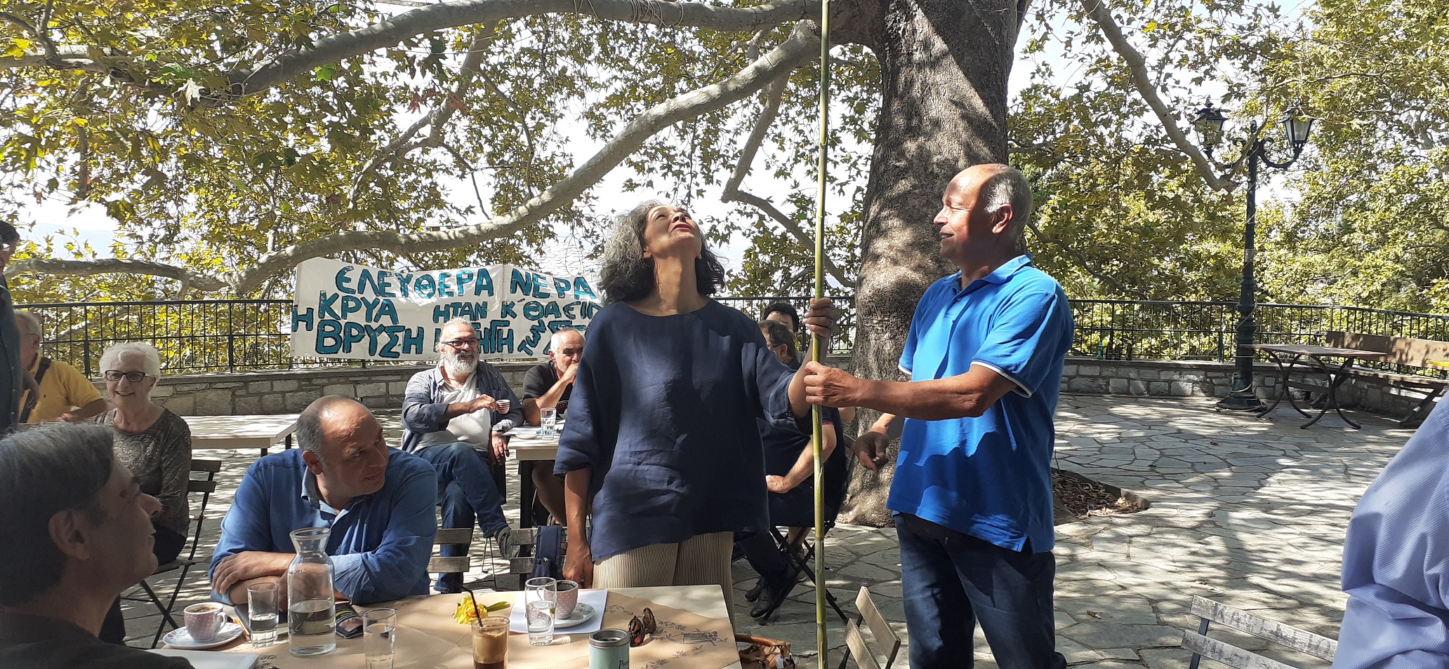 Στην πλατεία των Σταγιατών βρισκόταν νωρίτερα σήμερα, η Αντιπρόεδρος της Βουλής και Βουλευτής του ΜέΡΑ 25 κ. Σοφία Σακοράφα αναμένοντας τον Γραμματέα του κόμματος Γιάνη Βαρουφάκη, προκειμένου να ενημερωθούν από τους κατοίκους για το θέμα του νερού. Κι ενώ η κ. Σακοράφα απολάμβανε τον ελληνικό καφέ της κάτω από τον πλάτανο στην πλατεία του χωριού, ο Στέλιος Λημνιός, μέλος της Επιτροπής Αγώνα Πολιτών κατά της καύσης, την πλησίασε και της χάρισε ένα καλάμι!