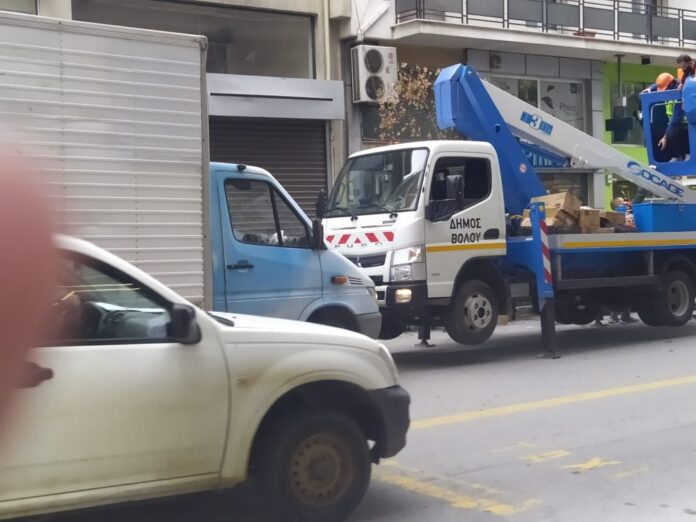 Με τα φορτηγά του Δήμου Βόλου γίνεται, όπως φαίνεται και στη σχετική φωτογραφία, η αφαίρεση του εορταστικού στολισμού της πόλης. Αλήθεια αυτό το έργο δεν το είχε αναλάβει ιδιώτης εργολάβος έναντι μάλιστα αδράς αμοιβής; Επειδή η δημοτική αρχή δεν πρόκειται να απαντήσει, μήπως να ασχοληθεί λίγο η αντιπολίτευση;