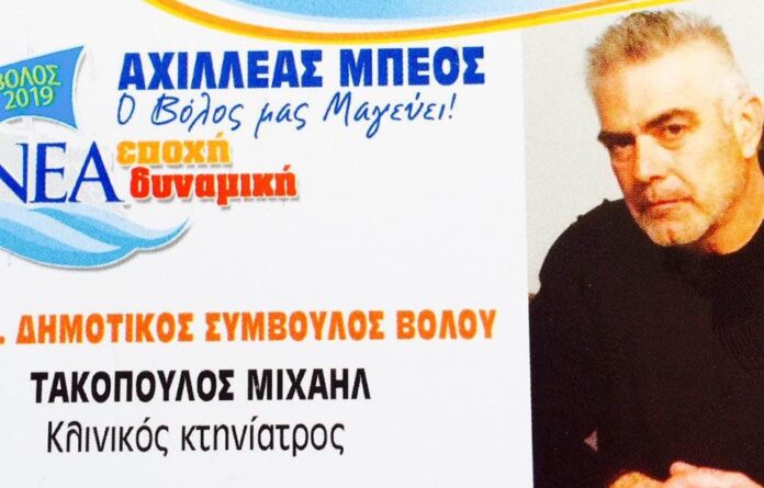 Τον άνθρωπο που θα λύσει το διαχρονικό πρόβλημα με τα αδέσποτα ζώα, βρήκε στο πρόσωπο του κτηνιάτρου Μιχάλη Τακόπουλου, ο Αχιλλέας Μπέος. Έχοντας αποτύχει να εκλεγεί το 2019 ως υποψήφιος δημοτικός σύμβουλος με την παράταξη του Μπέου, ο γνωστός κτηνίατρος έκανε αίτηση για να προσληφθεί ως ειδικός συνεργάτης του, προσδοκώντας να δώσει λύσεις σε κάτι που ταλανίζει εδώ και πολλά χρόνια την πόλη και που εδώ και δέκα χρόνια έχει επιδεινωθεί, επί ημερών της παρούσας δημοτικής αρχής. Και τελικά το πέτυχε. Προσλήφθηκε από χθες. Καλή επιτυχία του ευχόμαστε, διότι θα περιμένουμε από εδώ και πέρα αποτελέσματα. Να σημειωθεί ότι ο Τακόπουλος έχει και κουμπαριά με τον Μπέο, αφού ο Δήμαρχος φέρεται να ήταν μάρτυρας στον πολιτικό γάμο που είχε κάνει ο κτηνίατρος με την Βολιώτισσα δερματολόγο και επίσης υποψήφια με τον Μπέο, Κλαία Γεωργακλή.