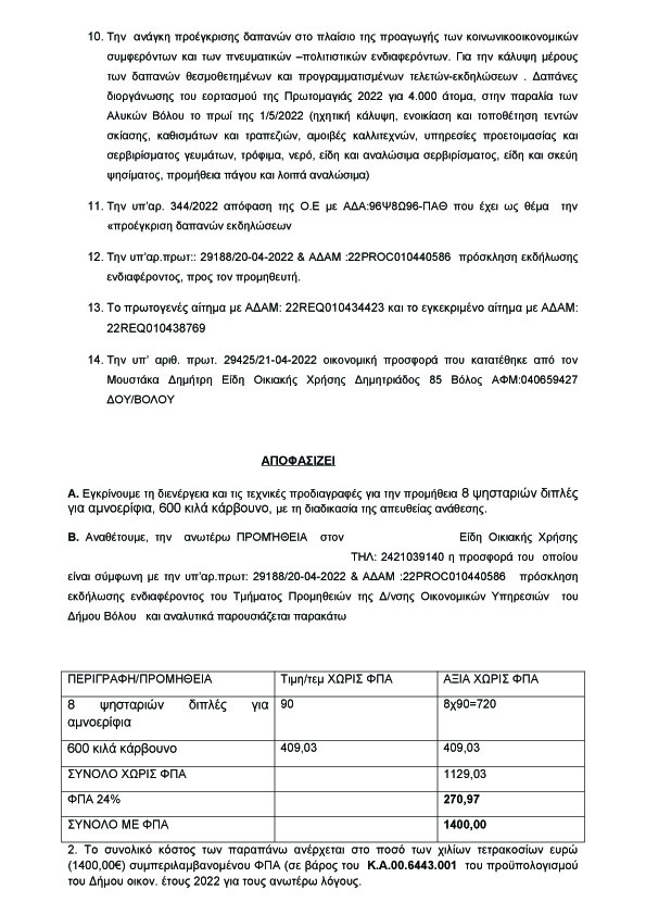 Θα αναστενάξουν…οι σούβλες απ’ ότι φαίνεται, την Πρωτομαγιά στις Αλυκές. Ήδη ο Αχιλλέας Μπέος έχει παραγγείλει τα αρνιά και προχώρησε και στην παραγγελία κάρβουνων. Όπως προκύπτει μάλιστα ο Δήμος Βόλου θα διαθέσει το εντυπωσιακό ποσό των 3000 ευρώ περίπου για σούβλες, κάρβουνα και μοτέρ για την “ψηστική” που θα γίνει στον αυτόματο και χωρίς ταλαιπωρία. Όταν είσαι λαρτζ όπως ο Μπέος, δεν κάνεις οικονομίες στα “ψιλικά”. Άλλωστε ο λαός θέλει άρτο και θεάματα και όταν τον λογαριασμό τον πληρώνει ο βολιώτικος λαός, προς τι η οικονομία;