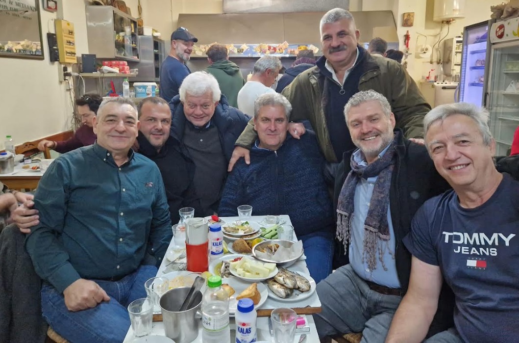 Ένα πολυσυλλεκτικό, αλλά κατά κύριο λόγο προοδευτικό, παρεάκι μαζεύτηκε χθες στον «Καβούρα». Οικοδεσπότης ο Δήμαρχος Αλοννήσου Πέτρος Βαφίνης και συνδαιτημόνες ο Δήμαρχος Αγιάς Αντώνης Γκουντάρας, με τον οποίο υπέγραψαν λίγο νωρίτερα σύμβαση για δύο σημαντικά έργα ύδρευσης στο νησί, ο Δήμαρχος Ν.Πηλίου Μιχάλης Μιτζικός και ο νέος Δήμαρχος Ζαγοράς-Μουρεσίου Κώστας Καραγεωργίου, ο δημοσιογράφος και νέος Αντιπεριφερειάρχης Τουρισμού Γιάννης Αναστασίου και ο επιχειρηματίας και υπ. Βουλευτής του ΣΥΡΙΖΑ – ΠΣ Μπάμπης Αραμπατζής. Το μενού περιελάμβανε τις εξελίξεις στην αριστερά-κεντροαριστερά και όχι μόνο, ενώ τέθηκε στο τραπέζι και το θέμα των εκλογών στην ΠΕΔ Θεσσαλίας, το οποίο παρουσιάζει μεγάλο ενδιαφέρον.