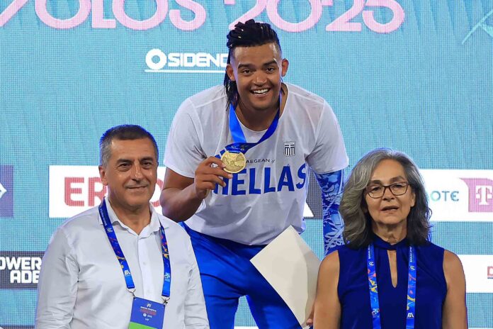 Πώς να μην χαμογελάει ο Μανώλο, όταν παρέλαβε το μετάλλιο από τον Δημήτρη Κουρέτα, προσωπικό φίλο και συναθλητή του πατέρα του Χάρη, ο οποίος ήταν αθλητής του Αλφειού Επιταλίου. Οι δύο τους προπονούνταν και αγωνίζονταν μαζί στην Πάτρα, ο Καραλής στο δέκαθλο και ο Κουρέτας στις αποστάσεις.