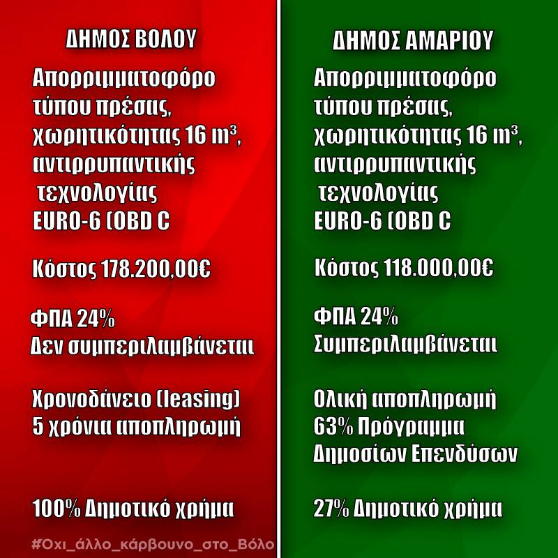«Επειδή πολλοί και πολλές είσαστε ΓΙΔΙΑ εδώ στο Βόλο και έχετε μηδενίσει τους πάντες και τα πάντα για χάρη της δημαρχάρας σας. Το ίδιο όχημα κόστισε στον Δήμο Βόλου 150% πιο ακριβά, ενώ το όχημα επιστρέφεται στην ιδιοκτήτρια εταιρεία μετά από 5 χρόνια, εκτός αν το αγοράσει ο Δήμος με επιπλέον χρήματα. Για να ξέρουμε και τι μας γίνεται με τα καθρεφτάκια και τις χάντρες για τους ιθαγενείς: Στην ουσία, νοίκιασαν τη σκουπιδιάρα, πληρώνοντας λεφτά για τζάγκουαρ. Στην υγεία των κορόιδων» έλεγε ο συμπολίτης, κ. Νίκος Μακρίδης.