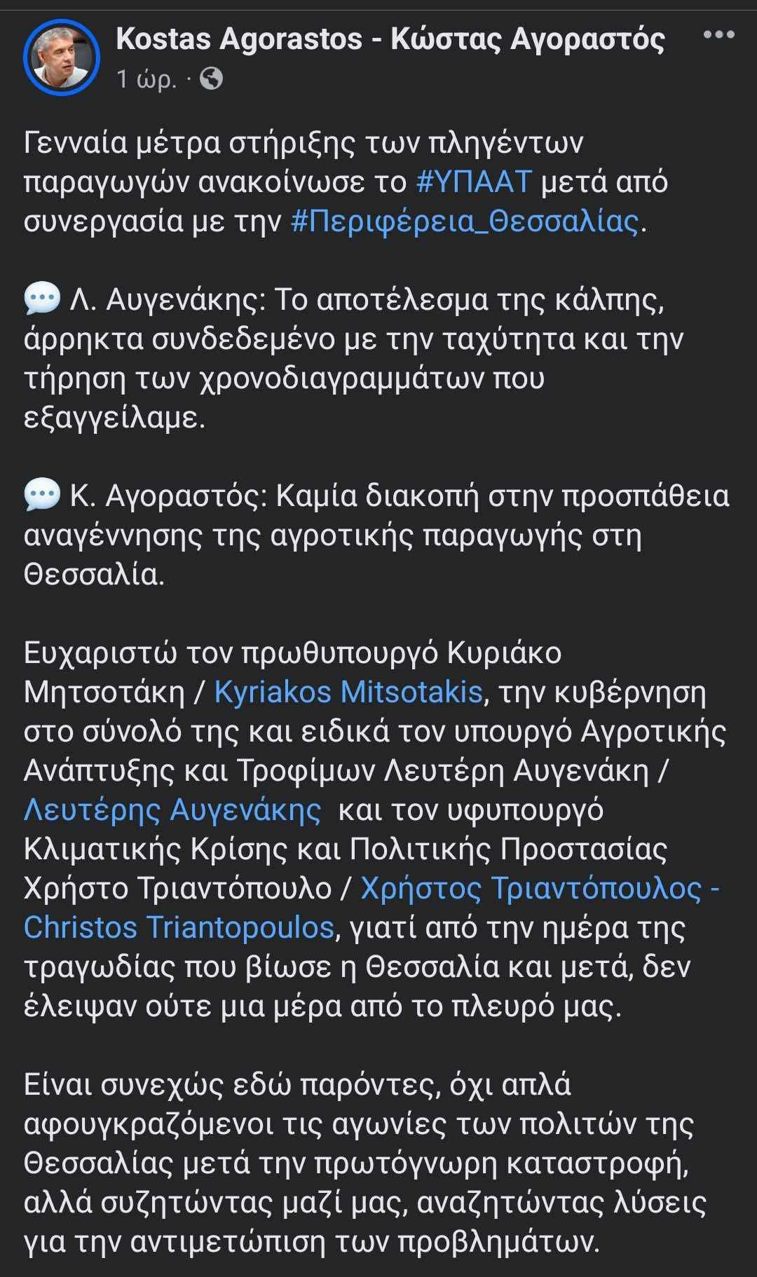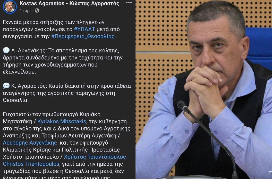 Συνέχεια, στο θέμα των καταγγελιών που κάνει τις δυο τελευταίες ημέρες, με αφορμή το σκάνδαλο του ΟΠΕΠΕ που «ακουμπά» και τη Θεσσαλία, δίνει με ανάρτησή του ο Περιφερειάρχης Θεσσαλίας, ο οποίος καθαρά «δείχνει» Αυγενάκη και Αγοραστό για παρέμβαση στις εκλογές του ’23 ανοίγοντας την πλατφόρμα επιδοτήσεων. Ο Δημήτρης Κουρέτας ανήρτησε ένα παλιό ποστ του πρώην περιφερειάρχη και γράφει « Μας κάνετε και θέλουμε να ξεράσουμε. Γιατί δεν ξεχνάμε τι καθεστώς ανατρέψαμε. Μην εκπλήσσεστε. Η ανάρτηση του πρώην περιφερειάρχη που έπρεπε να έχει κατεβάσει. Τι λένε μαζί με τον Αυγενάκη ; Ότι αν βγει ο Κουρέτας θα ανακοπεί η χρηματοδότηση για την Θεσσαλία. Μπλιαξ … Μη μας τα θυμίζετε.