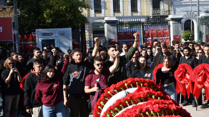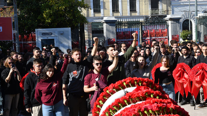 «Το ΚΚΕ τιμά τον ηρωικό φοιτητικό και εργατικό – λαϊκό ξεσηκωμό του Πολυτεχνείου, αντλεί δύναμη από το παράδειγμα των αγωνιστών της αντιδικτατορικής πάλης και από τα συνθήματά του για «Ψωμί – Παιδεία – Ελευθερία» – «Εξω οι ΗΠΑ, έξω το ΝΑΤΟ». Ο ξεσηκωμός του Πολυτεχνείου απέδειξε ότι ο αρνητικός συσχετισμός δύναμης αλλάζει μόνο απ’ την οργανωμένη δράση του εργατικού – λαϊκού παράγοντα, ενάντια στην ψευδαίσθηση ότι οι αλλαγές κορυφών μπορούν να βελτιώσουν τις συνθήκες για τις εργατικές – λαϊκές δυνάμεις.