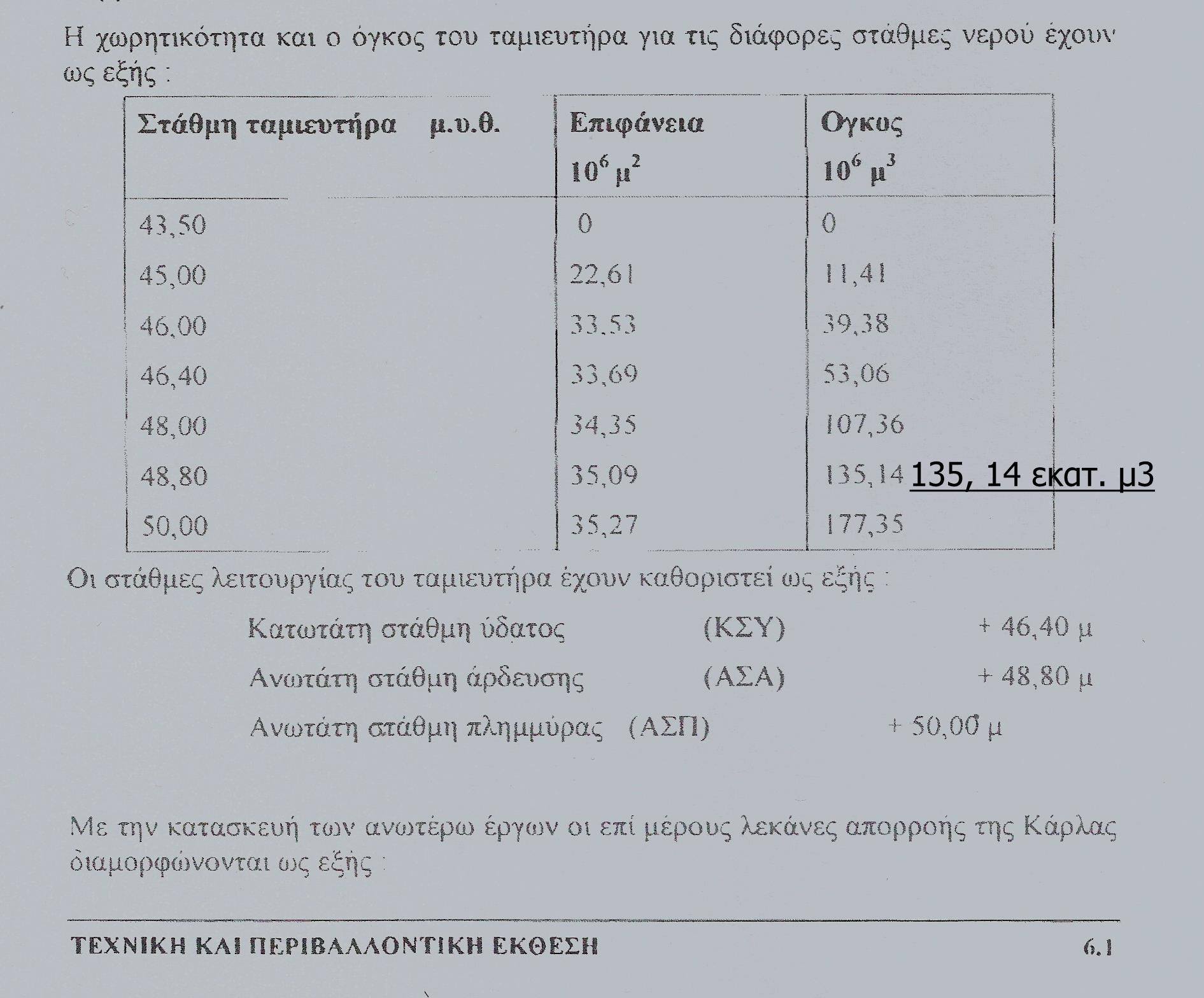 Η χωρητικότητα του Ταμιευτήρα (σύμφωνα με την μελέτη) : 184 hm3