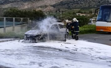 Ολοσχερώς καταστράφηκε αυτοκίνητο από φωτιά στον περιφερειακό του Βόλου