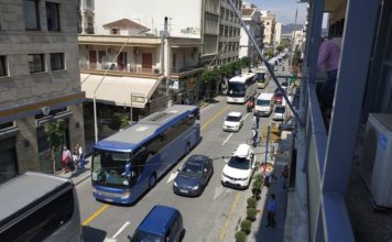 Πορεία στο κέντρο του Βόλου με τα τουριστικά λεωφορεία (φωτογραφίες-βίντεο)