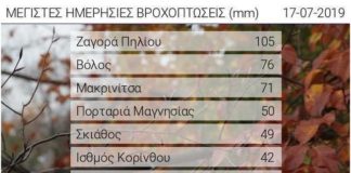 Στη Μαγνησία τα μεγαλύτερα ύψη βροχής από την πρόσφατη καταιγίδα
