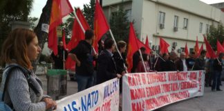 Συγκέντρωση έξω από την 32η Ταξιαρχία Πεζοναυτών στον Βόλο