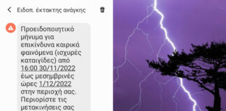Μήνυμα του 112 για την κακοκαιρία στα κινητά των Βολιωτών