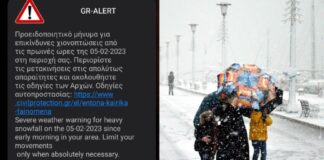 Προειδοποιητικό μήνυμα 112 στους Βολιώτες για επικίνδυνες χιονοπτώσεις